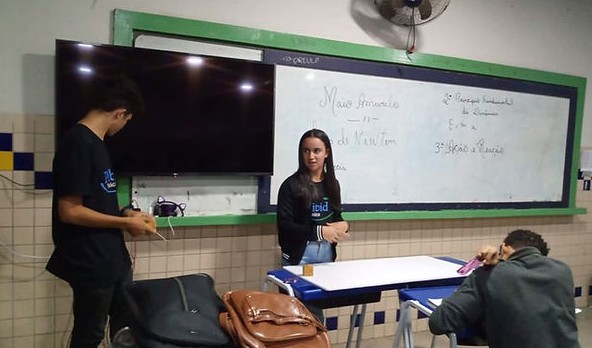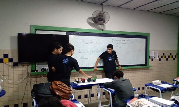 No mês de maio é abordado o Maio Amarelo que é uma campanha de conscientização no trânsito com a proposta de chamar a atenção da sociedade para o alto índice de mortos e feridos no trânsito em todo o mundo. Sabemos que no trânsito a física também está presente, e principalmente as três Leis de Newton. Por esta razão na turma do 1º C, a professora de física, Klessia Bastos preparou uma aula para abordar estas leis e nós do PIBID auxiliamos preparando experimentos visuais para que entendessem como cada lei funcionava no trânsito.