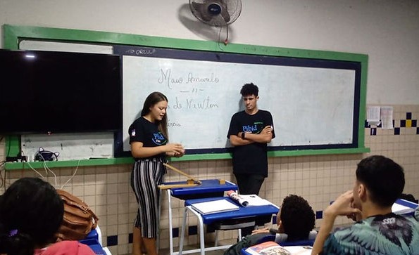 Nesse dia a professora Kléssia Bastos solicitou que os pibidianos fossem até a escola para que juntos pudessem organizar a biblioteca que se encontrava com uma enorme entropia. Visto armazenar livros novos e velhos amontoados e misturados, o local estava de difícil acesso, fazendo com que não conseguissem fazer tudo em um único dia. Todavia, isso não impossibilitou que o trabalho fosse realizado, boa parte dos livros antigos foram destinados a uma biblioteca que não dispunha de tais coleções, e aqui vale salientar a importância do uso do livro didático, visto que é um instrumento grandioso na vida do estudante e ainda mais quando de fato se utiliza e não se torna apenas mais um objeto qualquer em suas mãos, os livros que não se encontravam em condições adequadas foram destinados à reciclagem.
